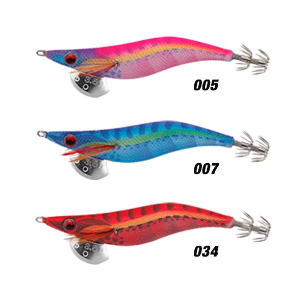 Basic model in EGI-OH series. It is easy to make shapely dart action. Aiming for sharpely dart action, we renewed material and shape. The new shape “Blade Sinker” makes more sharply dart action when make rod actions. We changed the sinker part of the squid jigs from “LEAD” material to “TIN” material. The dart action performance of “EGI-OH Q LIVE (old model)” has been further enhanced. Compared with old model, new model makes 20 time side to side dart action in the same distance. Stability performance improves when casting and action. New “EGI-OH LIVE” has 490GLOW Eyes.